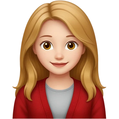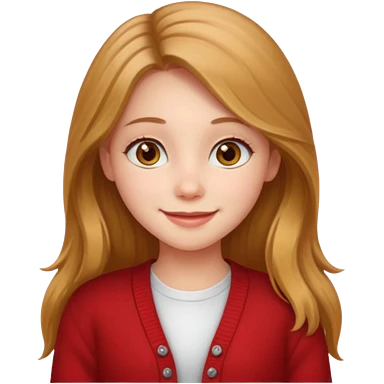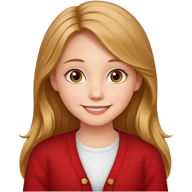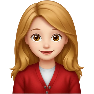 create a girl with hazel long hair, hazel eyes and beautiful smile, and red colour cardigan emoji