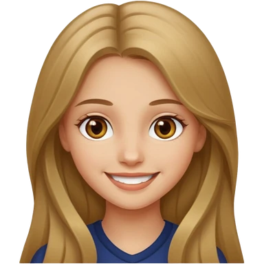 create a girl with dark blond long hair, olive colour eyes, beautiful smile and white skin emoji