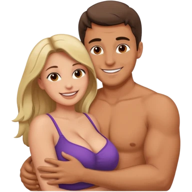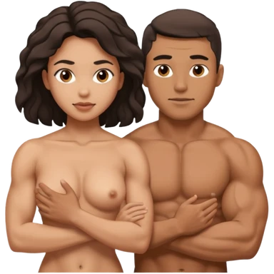naked mixed man fucks naked woman. Botha of them are having sex on the bed. emoji