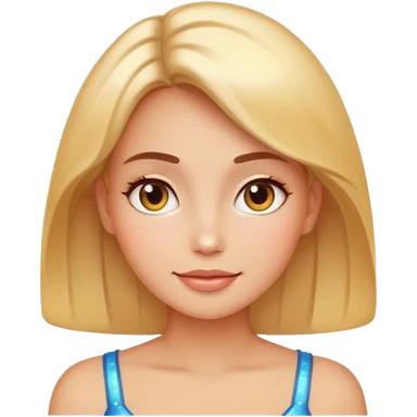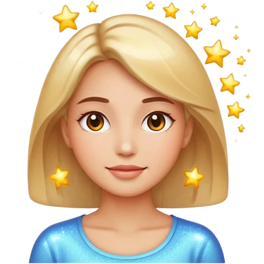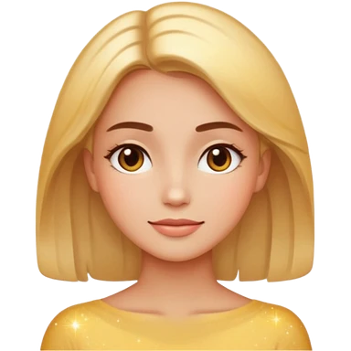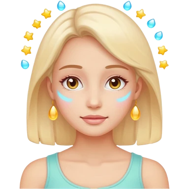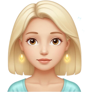 glowing woman face, natural skin, sparkles around, calm and healthy look, emoji style emoji