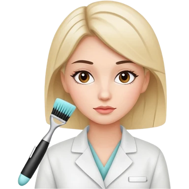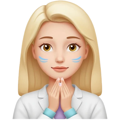 girl cosmetologist, thoughtful expression, soft colors, beauty clinic vibe emoji