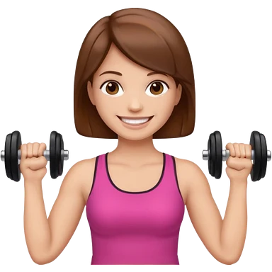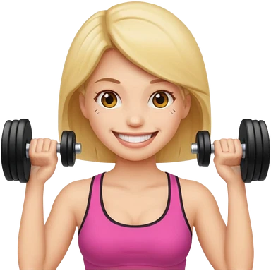 woman holding dumbbell in one hand and face roller in another, smiling, emoji style emoji