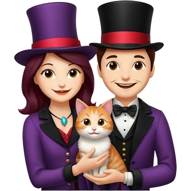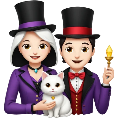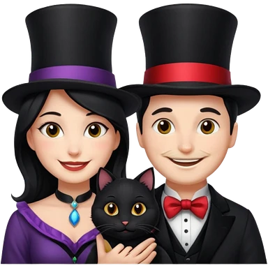 magician couple and their pet cat emoji