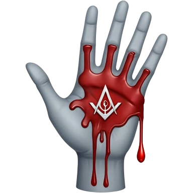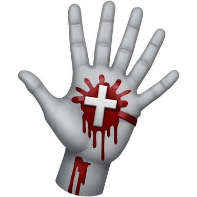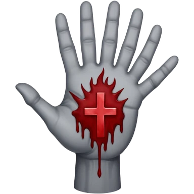 bloody grey hand with an upside down cross symbol on the palm emoji