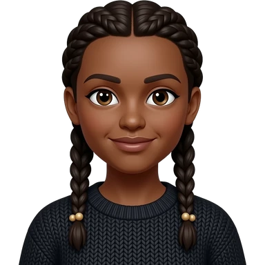 Emoji Dark brown skin. Braids with 4 beads at the bottom of each braid, black knit emoji