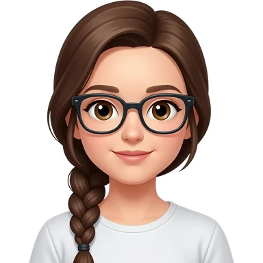 Emoji of a girl with a long brown braid, dark glasses, and brown eyes emoji