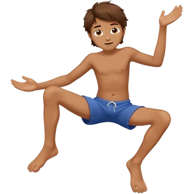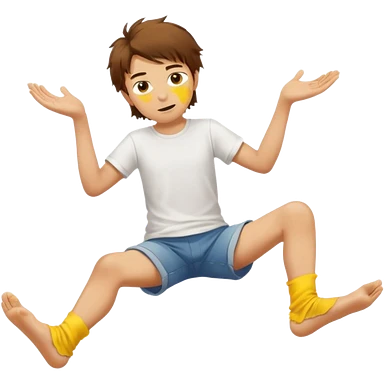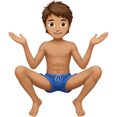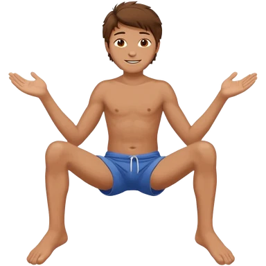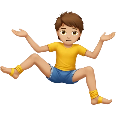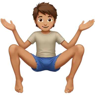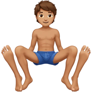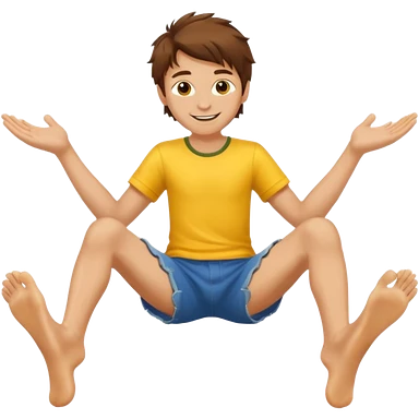 barefooted boy with messy brown hair and yellow skin spreading his legs emoji