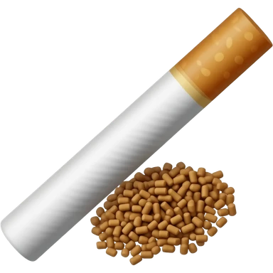 A small horizontally elongated nicotine pouch made from thin matte porous paper with a subtle fibrous texture. The pouch is softly filled and slightly curved, about twice as wide as it is tall. TThe short ends are sealed with narrow crimped paper edges. emoji