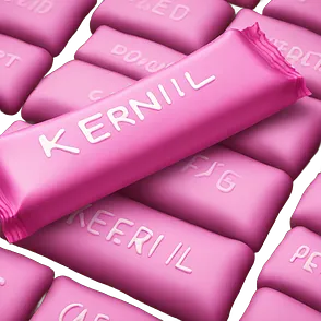 pink candy bar with the inscription “kerlli” emoji