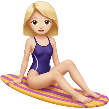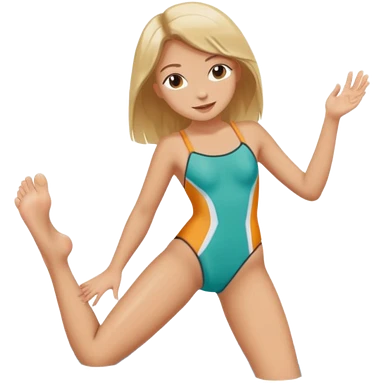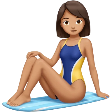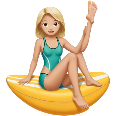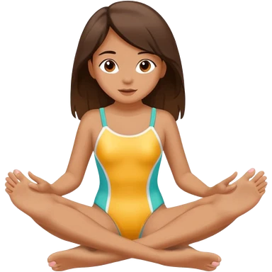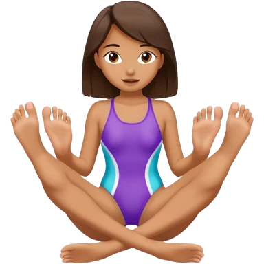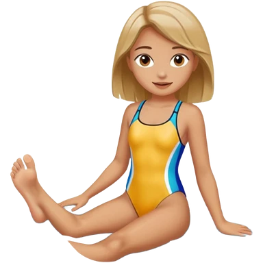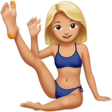 Girl wear swimsuit, The girl sits with her legs apart, show her feet emoji