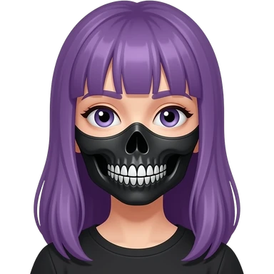 A YOUNG WOMAN WITH LONG PURPLE IS WEARING A SKULL MASK emoji
