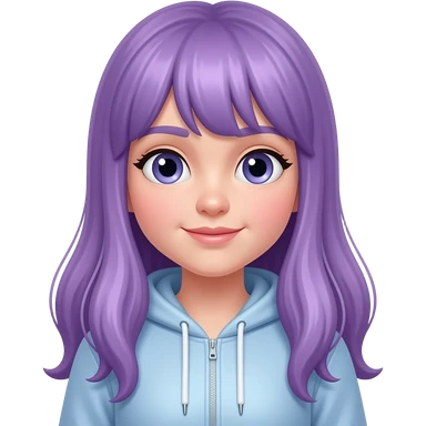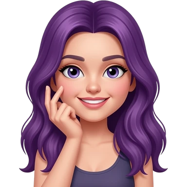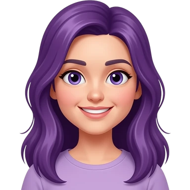 A YOUNG WOMAN WITH LONG PURPLE HAIR IS SMILING emoji