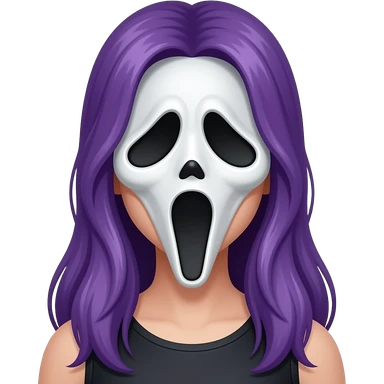 A YOUNG WOMAN WITH LONG PURPLE IS WEARING A GHOSTFACE MASK emoji