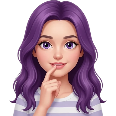 A YOUNG WOMAN WITH LONG PURPLE HAIR IS BITING HER FINGER emoji