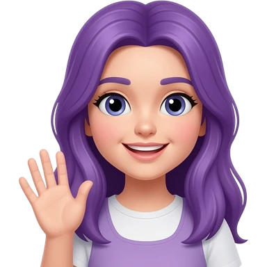 A YOUNG WOMAN WITH LONG PURPLE HAIR SAYS HELLO emoji