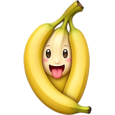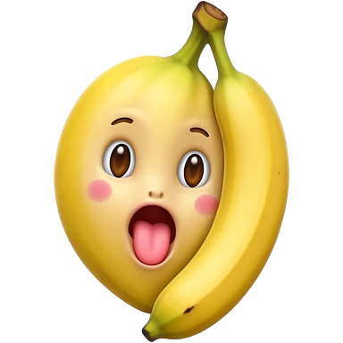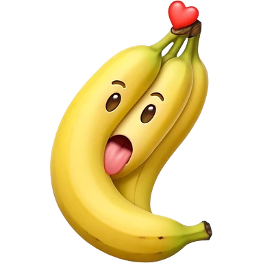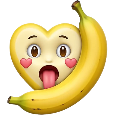 a banana in the mouth of a heart eyes emoji with its tongue out emoji