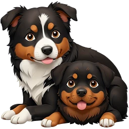 A black and white border collie werewolf, standing on her hind legs, holding a cow's hoof. emoji
