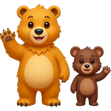Simbka the grizzly golden orange bear is waving with a paw and kopa the brown bear cub is waving my paw emoji