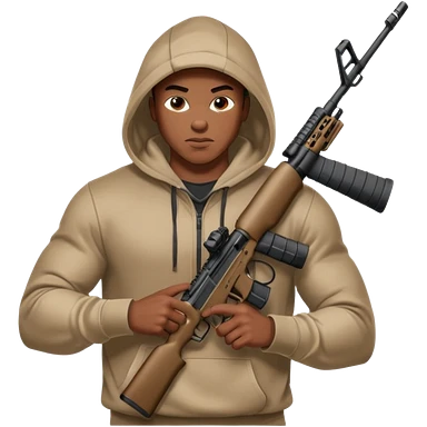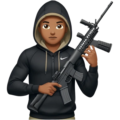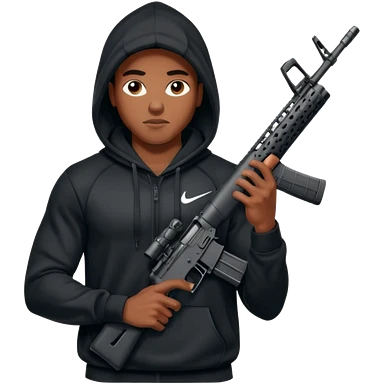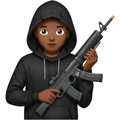Fais moi un jeune afro américain qui ressemble a un gangster qui tient une AR15 avec un hoodie a capuche, capuché emoji