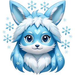 Kawaii glaceon pokémon ice type, falling snowflakes surrounding face emoji