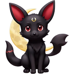 Kawaii Umbreon dark type Pokémon, full body, crescent moon behind subject, crimson colored eyes emoji