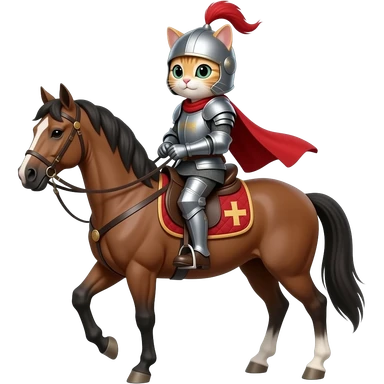 Atın üstüne binip şovalye kıyafeti giymiş kedi emoji