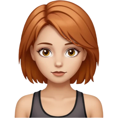 a girl with makeup on and hazelnut colered hair and eyes with a tank top scin color white emoji