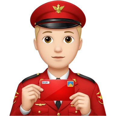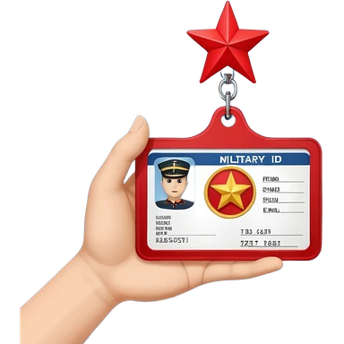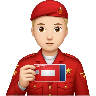 военный билет в руке крассный без человека, просто рука и в ней билет со звездой emoji