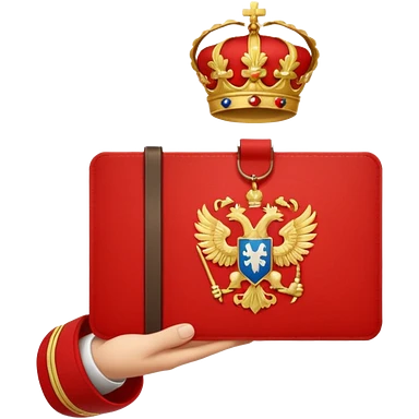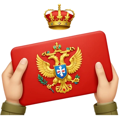 военный билет в руке крассный без человека, просто рука и в ней билет русский герб emoji