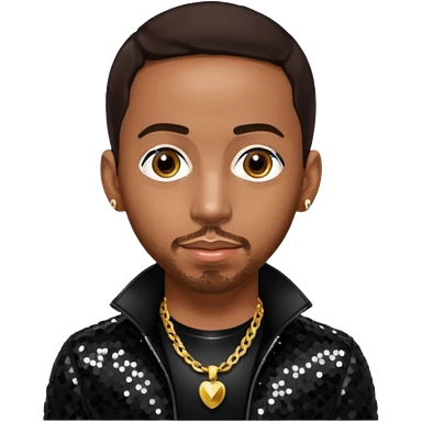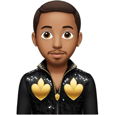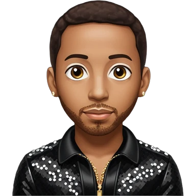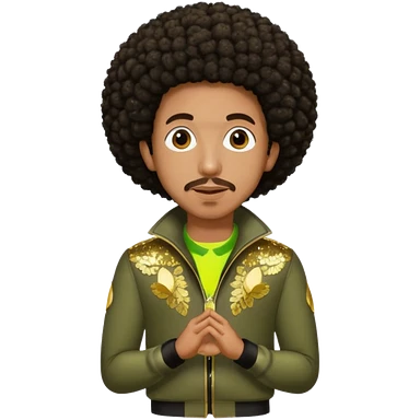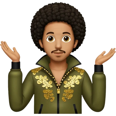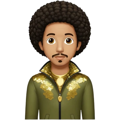 Ludacris with dark brown afro hair, olive sequin outfit emoji
