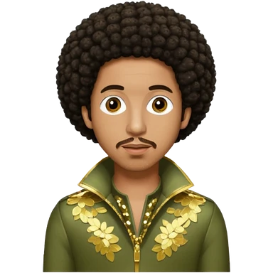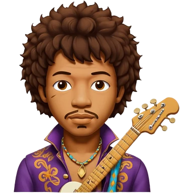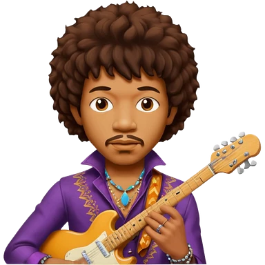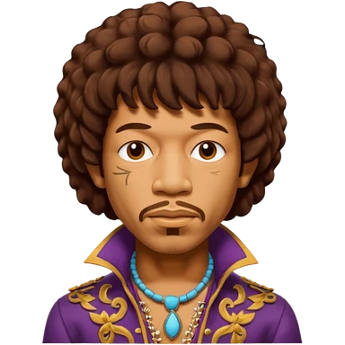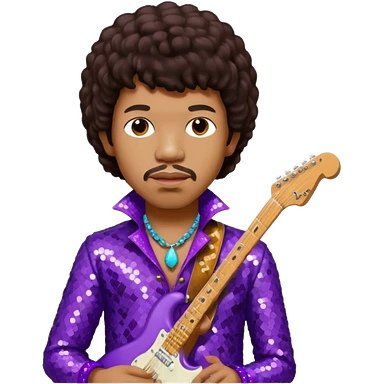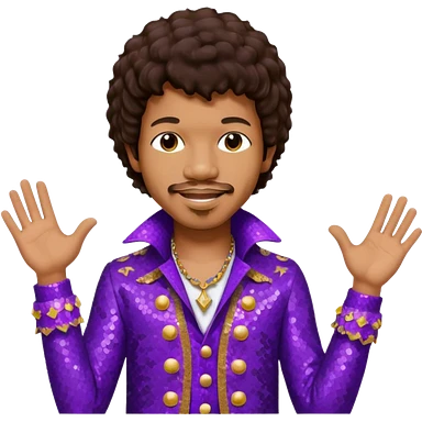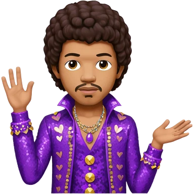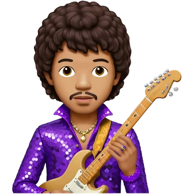 Jimi Hendrix with dark brown hair, purple sequin outfit emoji