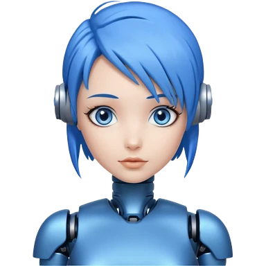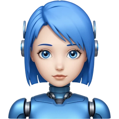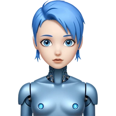 A robot girl with blue eyes and blue hair as a nude woman with blue nipples emoji