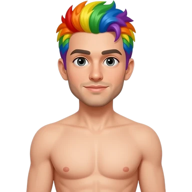 shirtless full body male with rainbow hair emoji