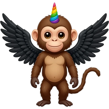 capuchin monkey with rainbow unicorn horn and black wings emoji