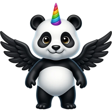 panda with rainbow unicorn horn and black wings emoji