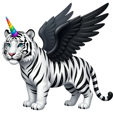white tiger with rainbow unicorn horn and black wings emoji