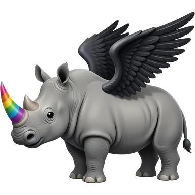 rhino with rainbow unicorn horn and black wings emoji