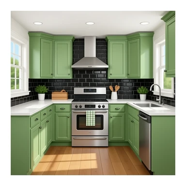 fancy kitchen with black wall tiles and Green cabinets emoji