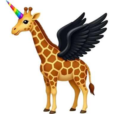 giraffe with rainbow unicorn horn and black wings emoji
