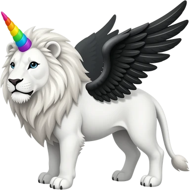 white lion with rainbow unicorn horn and black wings emoji