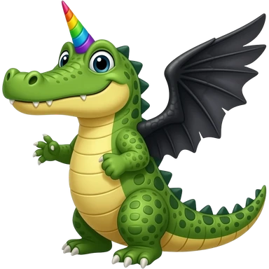 Alligator with rainbow unicorn horn and black wings emoji