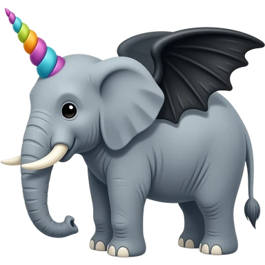 elephant with rainbow unicorn horn and black wings emoji