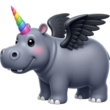 hippo with rainbow unicorn horn and black wings emoji