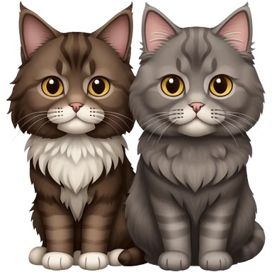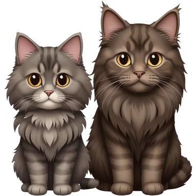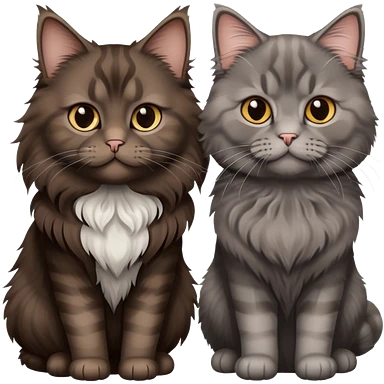 A dark brown Maine Coon cat and a Grey schottish fold cat emoji