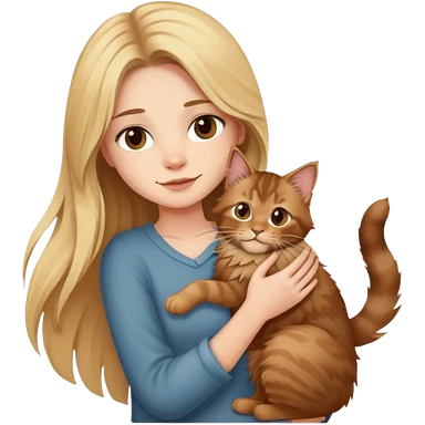 A blonde girl holds a brown Maine Coon cat in her arms emoji