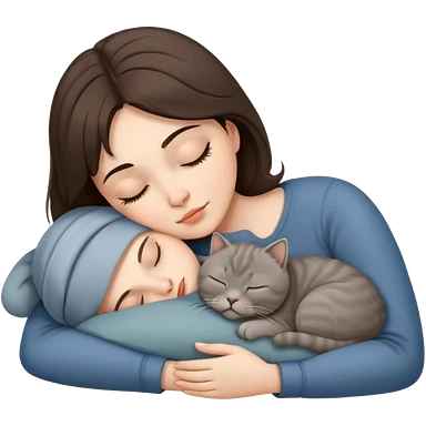 Grey scottish fold cat and brunette woman sleeping together emoji