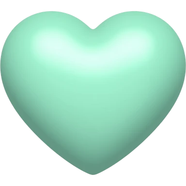 cute mint green heart emoji, pastel mint color, soft round shape, kawaii style, simple emoji design, glossy highlight, sticker style, transparent background emoji