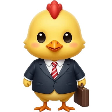 cute chick office worker, yellow baby chick wearing suit and tie, carrying a briefcase, cheerful emoji style emoji