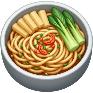 cute korean tteokbokki emoji, bowl of spicy red rice cakes with sauce, korean street food, minimal emoji style emoji
