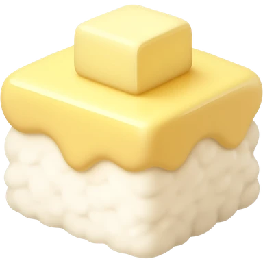 cute butter rice cake dessert emoji, soft yellow butter rice cake cube with a small piece of butter melting on top, pastel colors, kawaii dessert style, simple emoji design, glossy highlight, sticker style, transparent background emoji